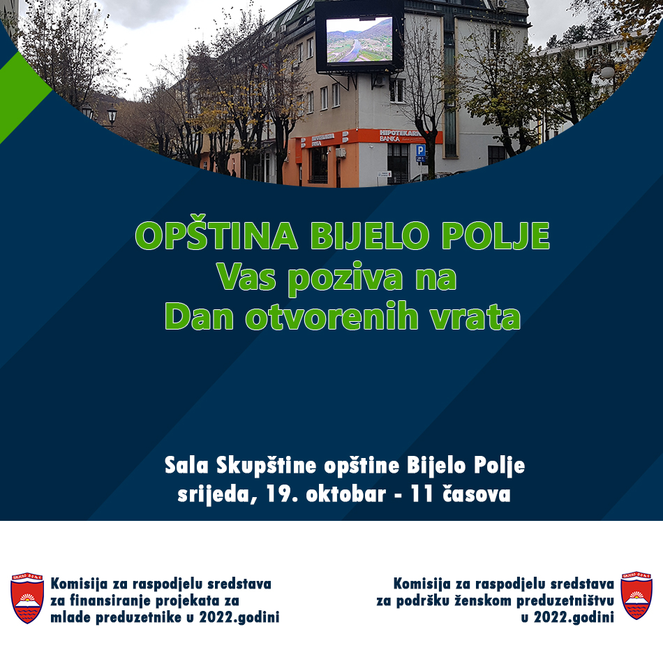 "Na osnovu Javnog poziva za raspodjelu sredstava, organizuje 19.oktobra 2022.godine, u 11h u velikoj sali Skupštine opštine Bijelo Polje Dan otvorenih vrata, radi informisanja aplikanata o svim pitanjima koji su od značaja na učešće na Javni poziv" - navodi se u obavještenju za javnost.