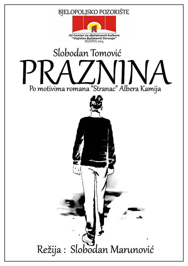 Bjelopoljsko pozorište premijerno je odigralo predstavu “Praznina” sinoć u Centru za kulturu. Ovu predstavu uradio je Slobodan Tomović po motivima romana “Stranac” Albera Kamija, a režirao je Slobodan Marunović.