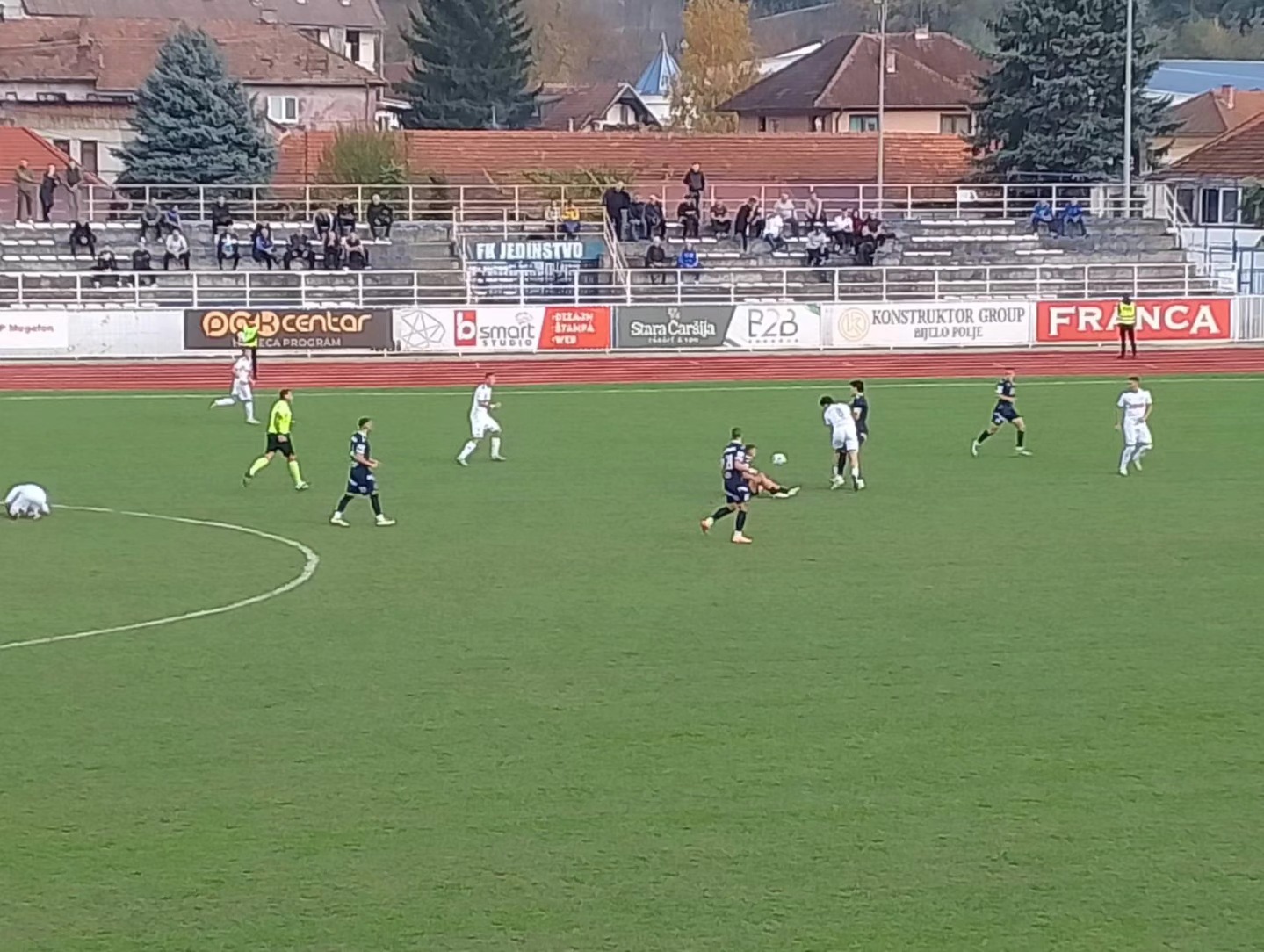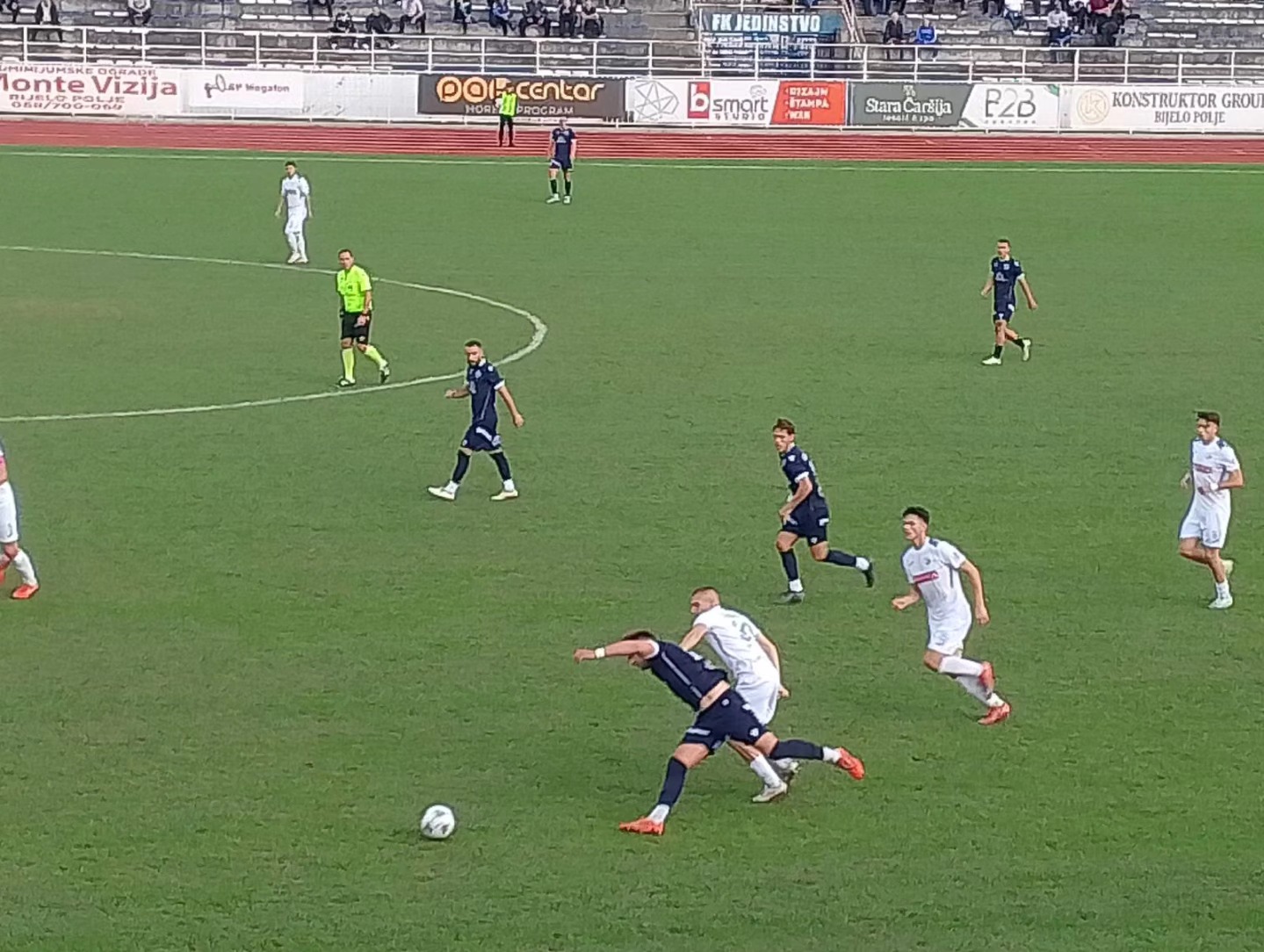 Jedinstvo je prvo zaprijetilo u 36. minutu ali je Kolić loše šutirao. Dimaćin je mogao do gola i minut kasnije, ali je sreća bila na strani gostiju a lopta je završila u korneru.