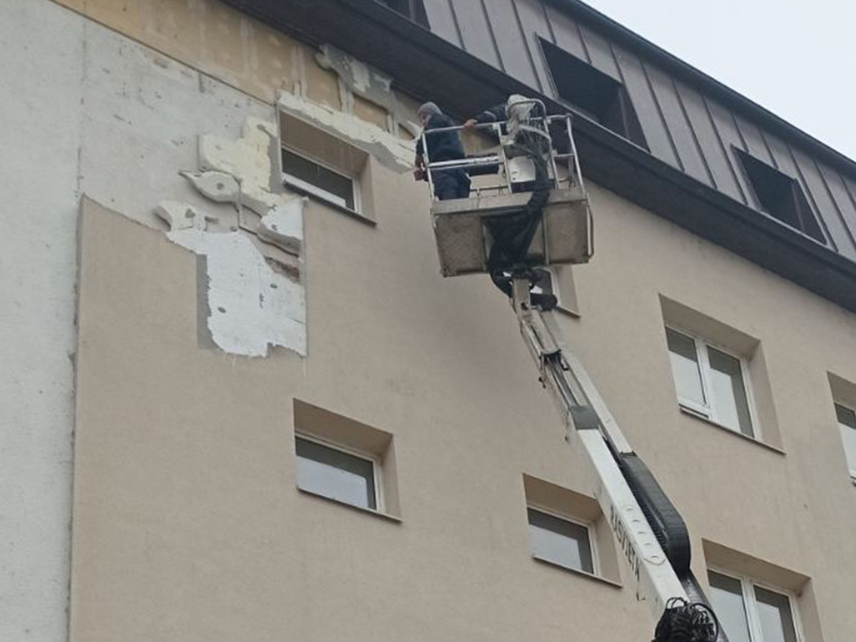Pripadnici Službe zaštite i spašavanja po hitnom nalogu Komunalne inspekcije, uklonili su dio oštećene fasade koji je ugrožavao bezbijednost prolaznika.