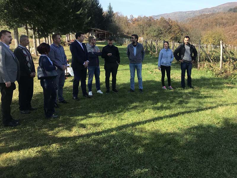 Predstavnici Opštine i IFAD- a obišli su danas poljoprivredno gazdinstvo Andrije Delića u selu Šljepašnica, koji ima zasad od 1.5 ha maline, kao i rasadnik PU Biotehnički centar i hladnjaču preduzeća Senzal d.o.o.