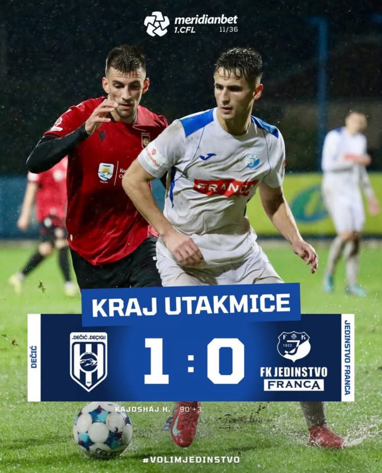 Fudbaleri Dečića savladali su juče Jedinstvo Franca u Tuzima (1:0), a do gola su stigli u sudijskoj nadoknadi.